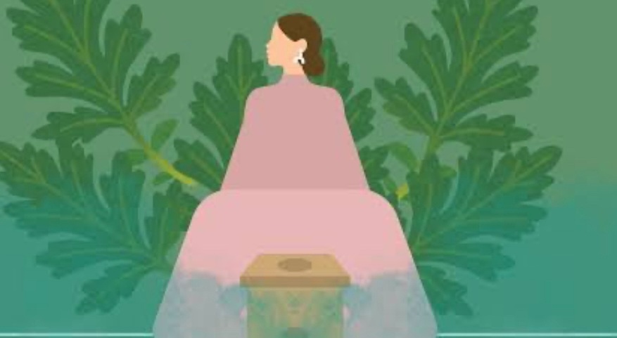 蒸気が出る専用の椅子に首から下をすっぽり包むマントを着て座り